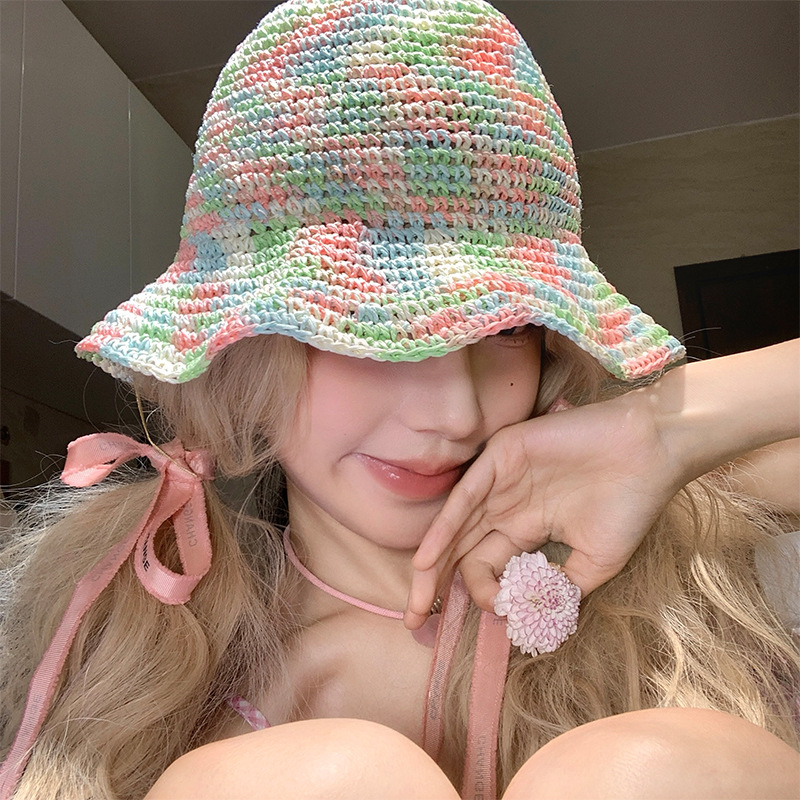 ドーパミンカラー漁師帽女性夏の薄い日よけ帽子海辺のビーチリゾート風日よけ日焼け止め顔が小さい