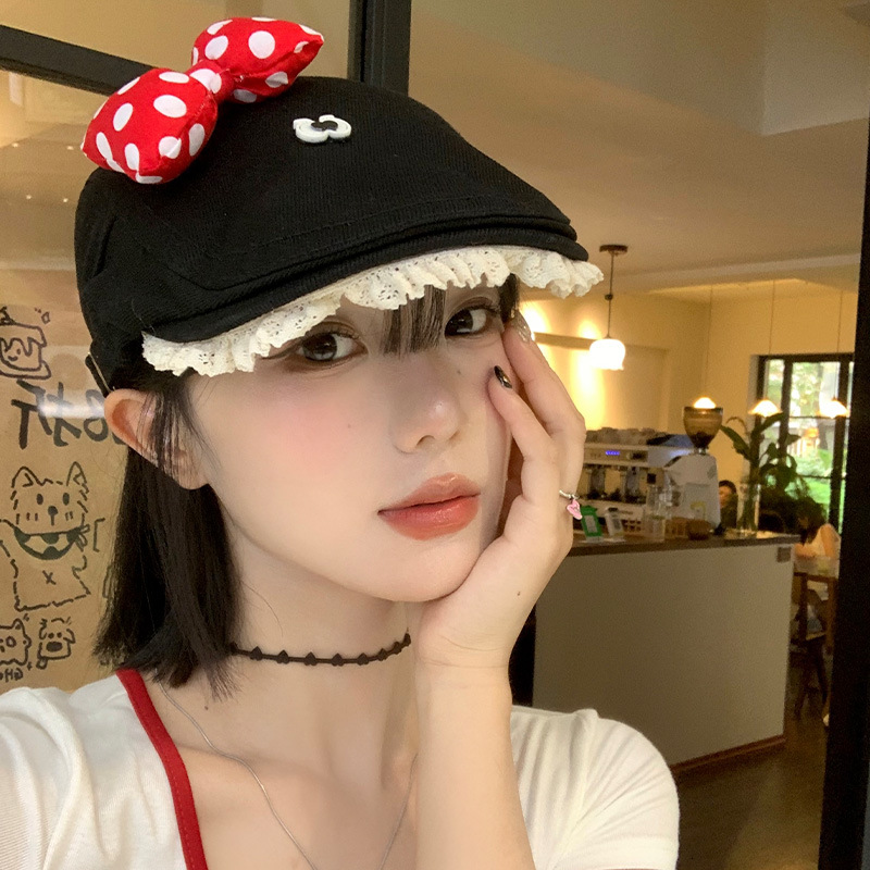 夏の薄いレースの前進帽亜文化y 2k蝶結びの画家の帽子の大きい頭の周りの女性のかわいいアヒルの舌
