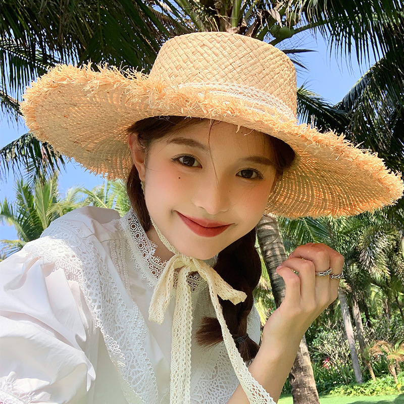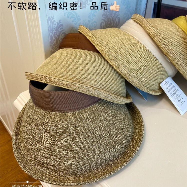 日焼け止め空頂麦わら帽子孫夫婦同型uv日焼け止め日よけ帽子春夏紫外線防止大きなつばのカチューシャ太陽帽子