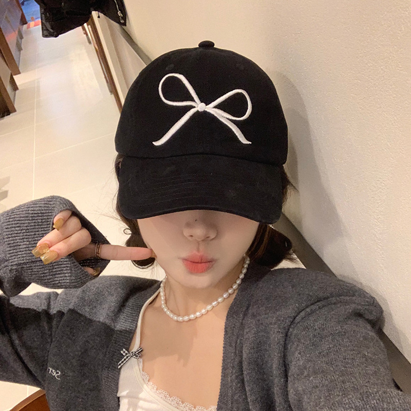 春夏ins平つばのアヒルの舌の帽子の女性の甘くてかわいい柔らかいトップのカップルのアヒルの舌の帽子の蝶結びの刺繍の野球の帽子
