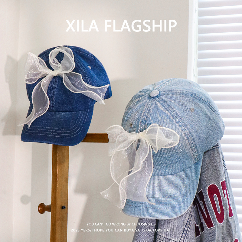 蝶結びのデニムの野球帽の子供の甘いストラップの愛のアヒルの舌の帽子の小さい大衆の韓系のオリジナルのデザインは顔が小さいです。
