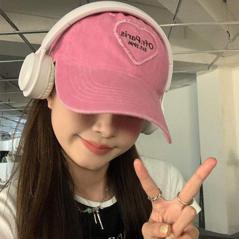 ピンクの愛の野球帽の大きい頭の周りの帽子の甘いクールなギャルの復古のアヒルの舌の帽子は顔の小さい夏の日よけの日焼け止めの帽子を現します。