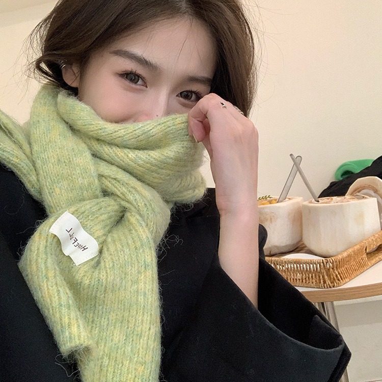 韓系学院風刺繍女の子毛糸マフラー秋冬保温マフラー