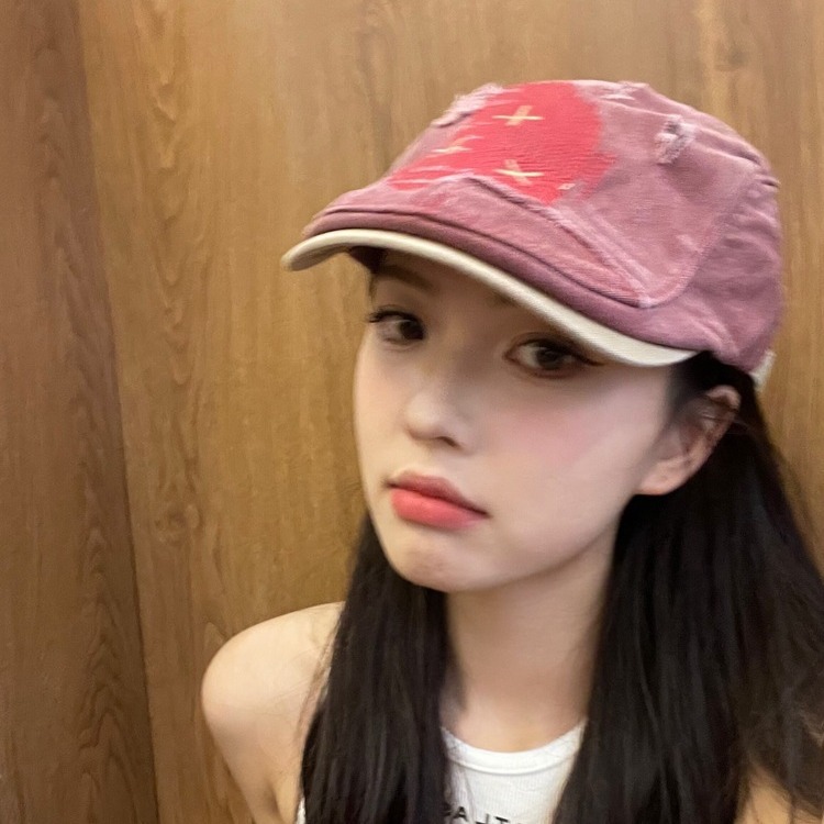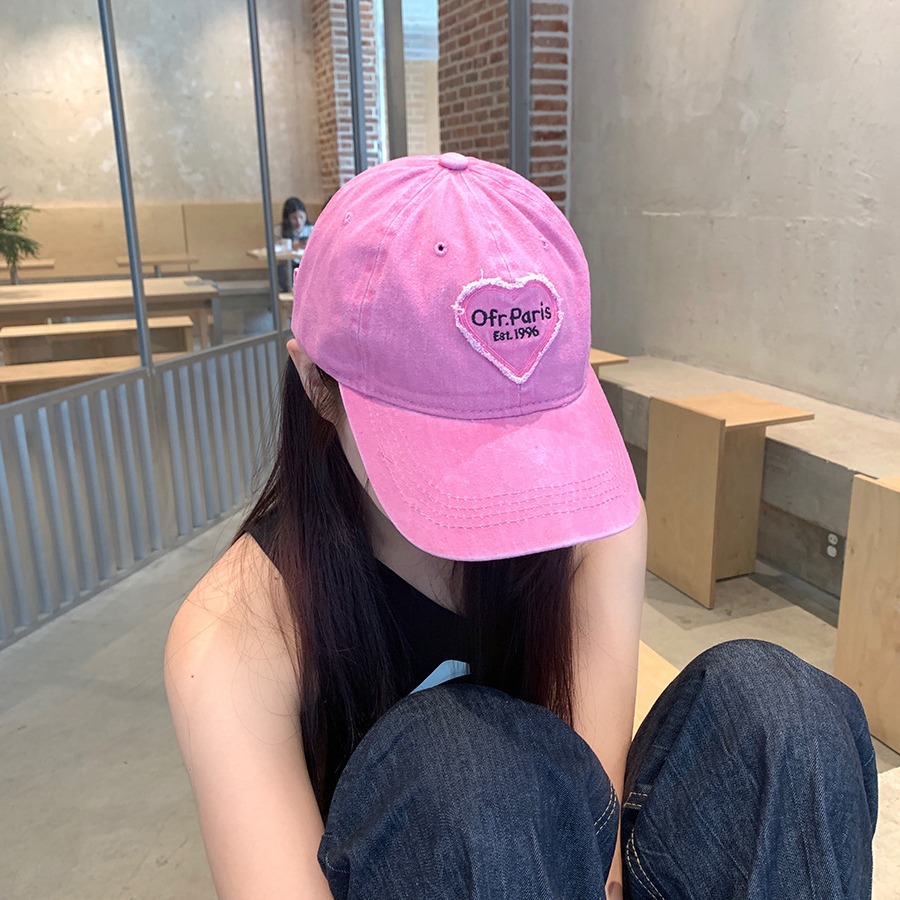 レトロな水洗いは古いピンクの愛の野球帽を作ります。