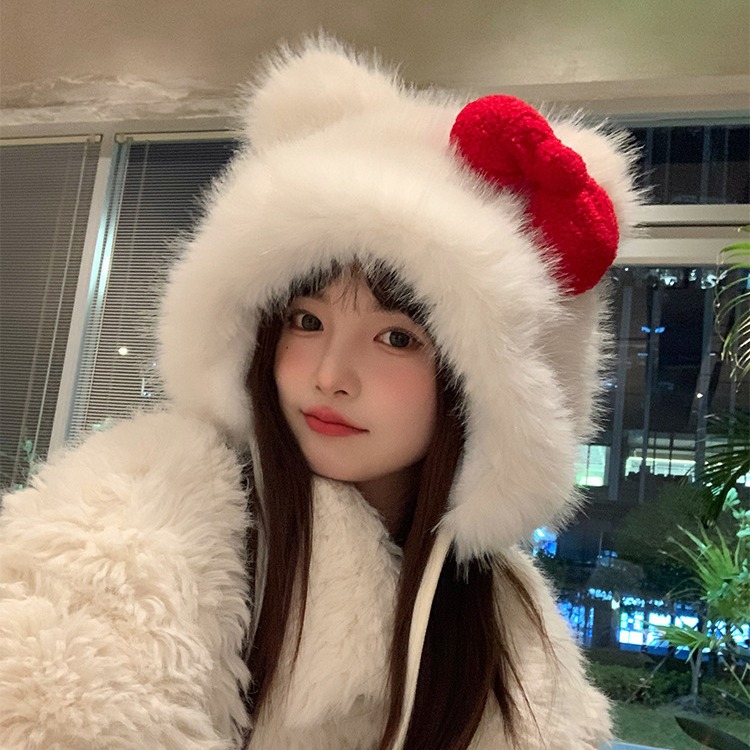 厚いベルベットの耳保護帽女性秋冬防寒保温包頭帽甘美でかわいい赤い蝶ネクタイ雷鋒帽潮