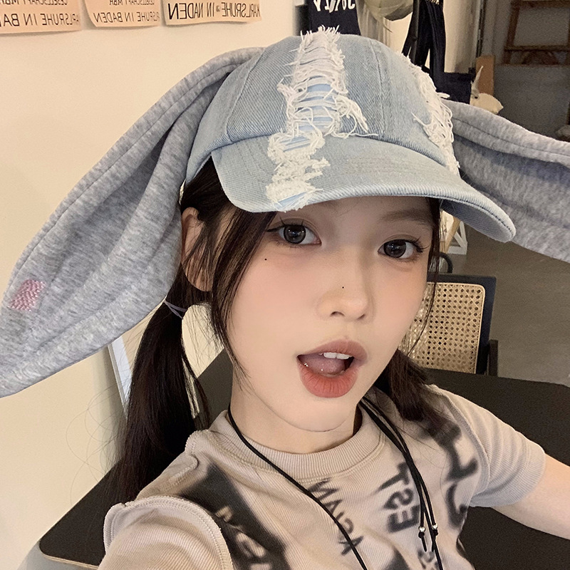 アビー風ウサギ耳カウボーイ水洗い穴を割った野球帽子newjeansと同じ甘いヒップホップアヒル舌帽潮