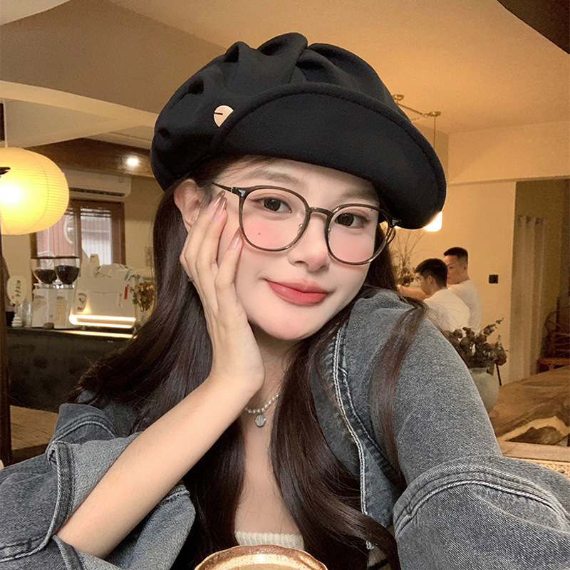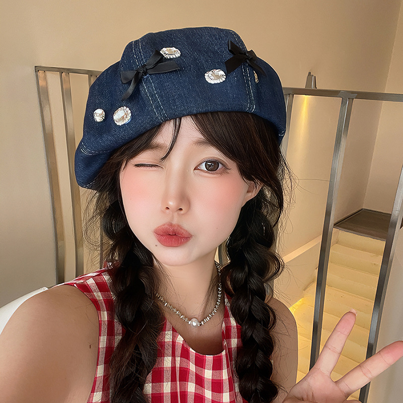 デニムのベレー帽春秋の薄いモデルの女性の韓国版は顔を見せます。
