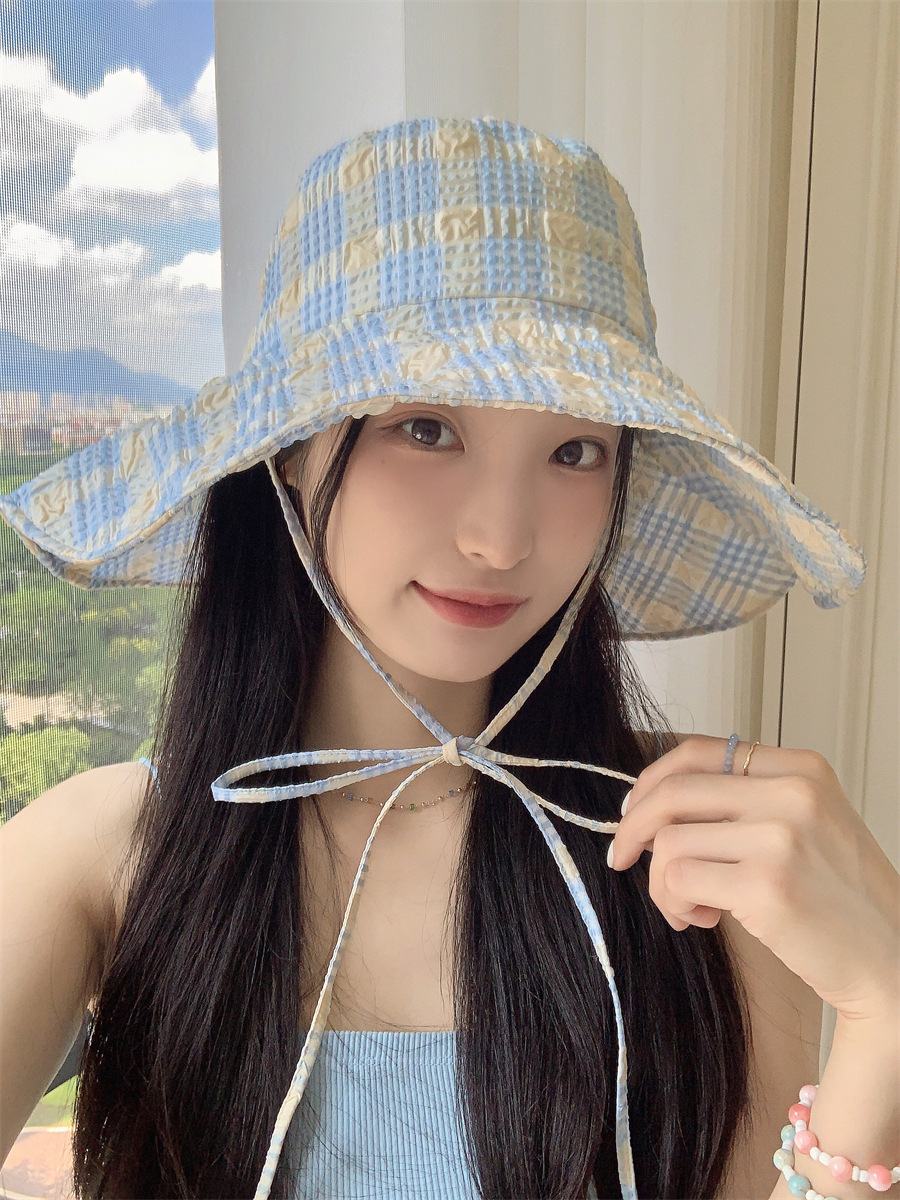 趙露思同項の清新な色の格子縞の大きい軒の漁師の帽子の女性の夏の日よけの日焼け止めの日よけの日の帽子の盆の帽子の薄い金