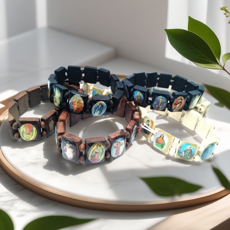 クロスボーダー木製宗教スタンプ手串ブレスレット弾力手串数珠ブレスレット