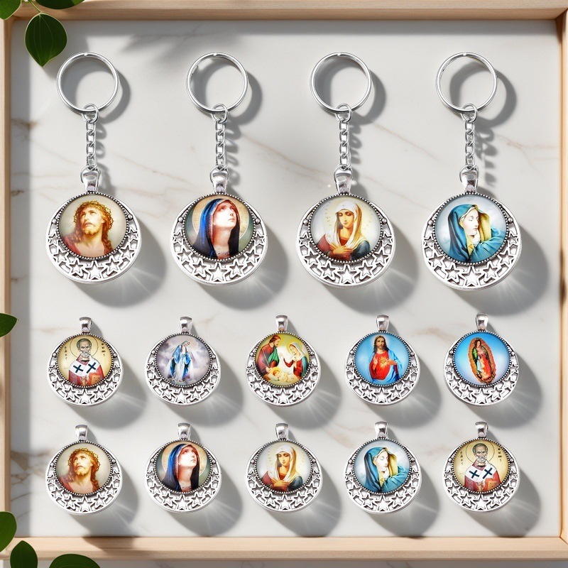 クロスボーダーtemu合金楕円宗教ペンダントレトロネックレスキーホルダーアクセサリー