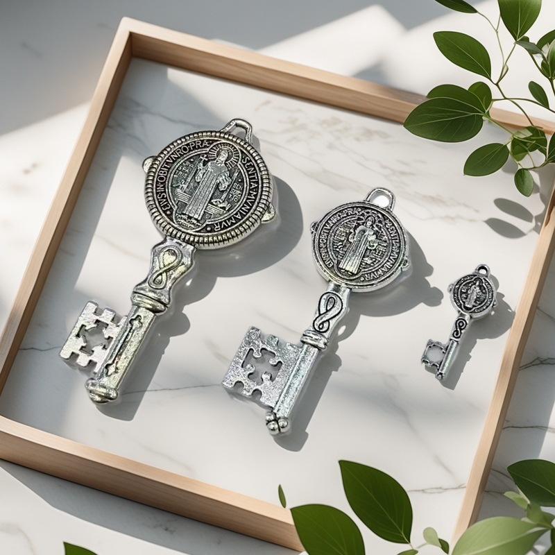 クロスボーダー合金レトロキー形状セントベネディクトペンダントネックレスキーホルダーアクセサリーアクセサリー