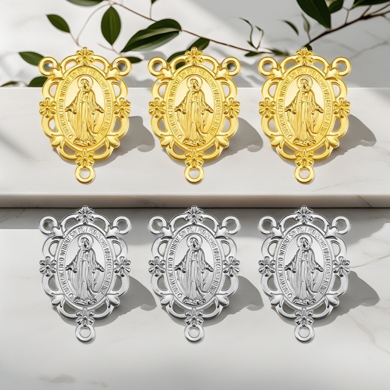 クロスボーダーtemu合金聖母マリア三穴コネクタネックレス数珠アクセサリーアクセサリー