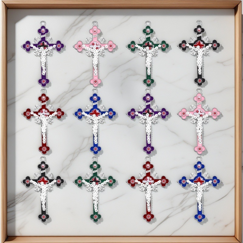 クロスボーダーtemu合金ドロップオイルクロスペンダントDIYネックレスキーホルダーアクセサリー
