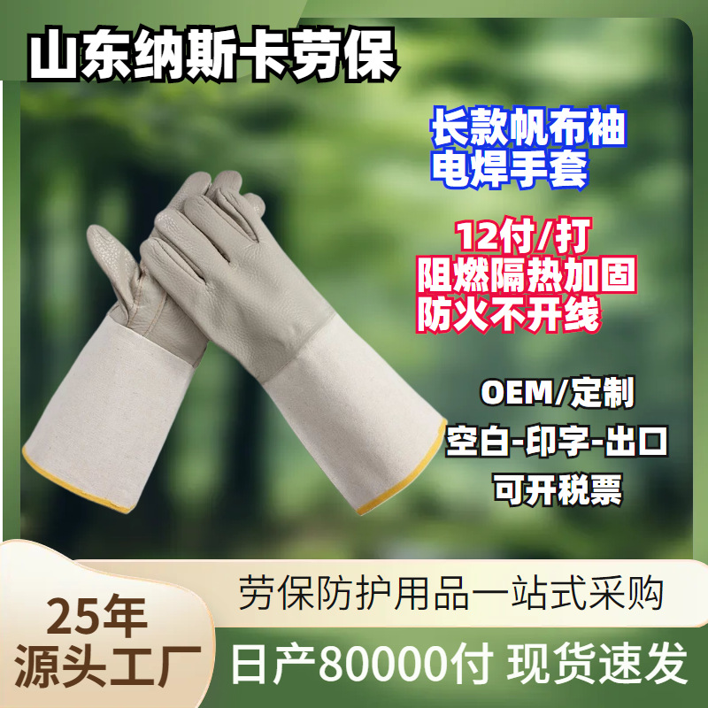 定制耐磨加厚透气内衬机修电焊工防护24线加长双层全帆布劳保手套