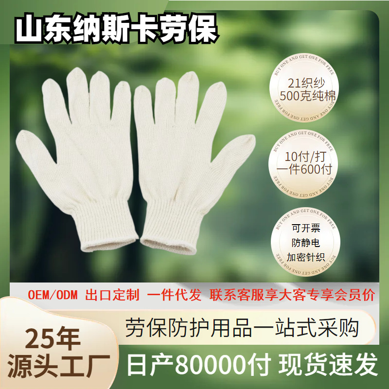 卸売り入札手防護21本の糸手袋労働保護綿糸綿手袋600グラムの原生綿糸手袋