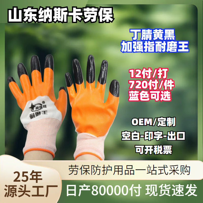卸売手袋13針労働保護手袋909耐摩耗性、耐油性、耐酸性、耐アルカリ性、作業用黄色と黒の強化指ニトリル手袋