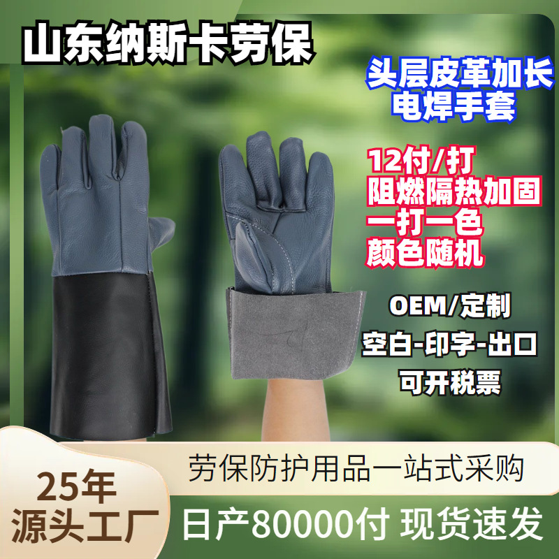 スポット卸売延長長型溶接機械耐久性耐高温断熱全牛革キャンバス長袖溶接手袋
