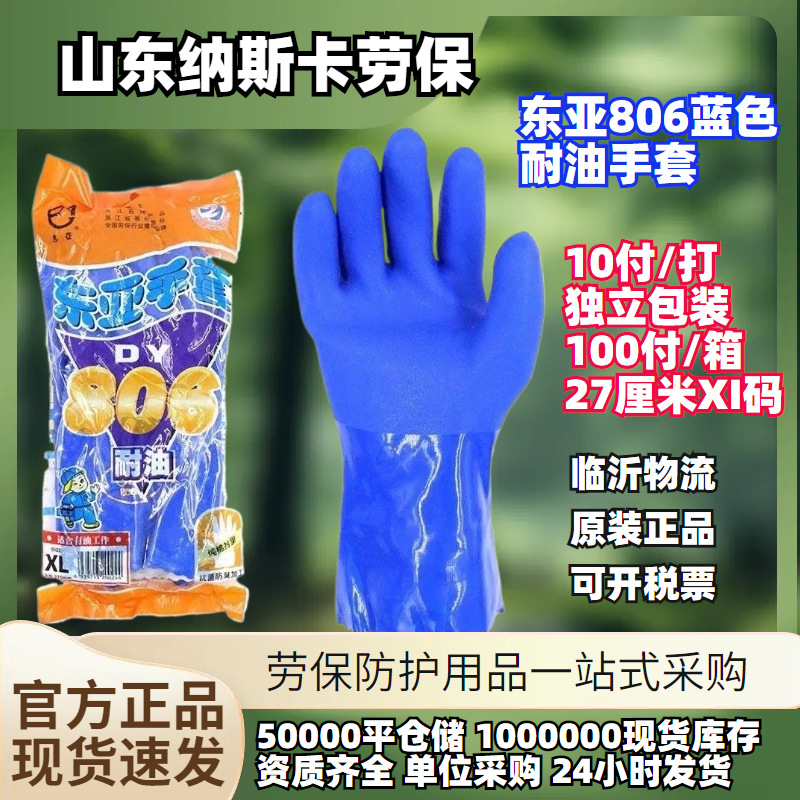 東アジア806防油酸アルカリ化学腐食青色フロスト手袋806w強化耐油手袋