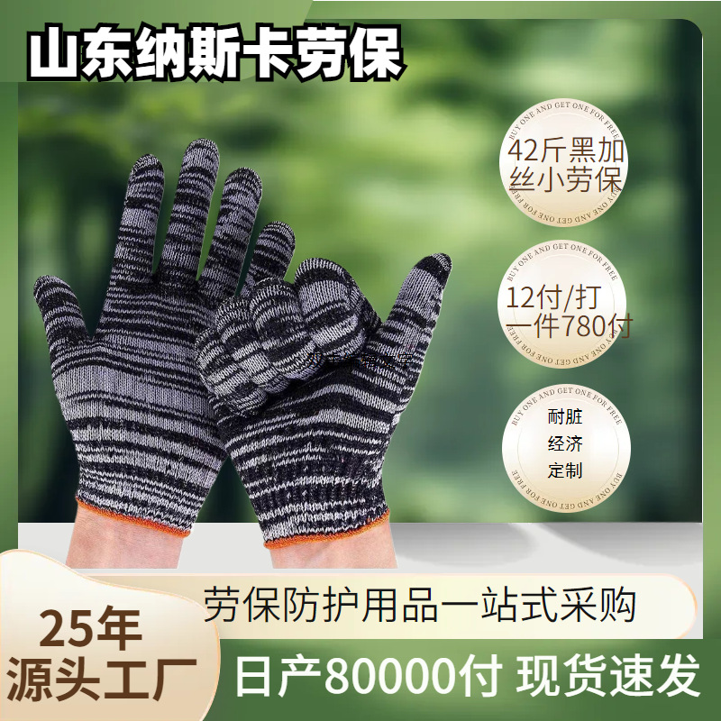 メーカー卸売り労働保護手袋自動車修理労働防護工事現場の仕事綿加糸灰黒糸汚れ防止手袋