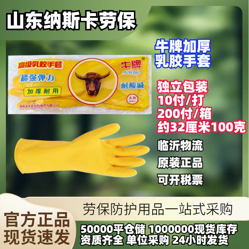 現物広東牛牌ラテックス厚手手袋洗濯皿洗い家事手袋労働保護ゴム家庭用牛筋手袋