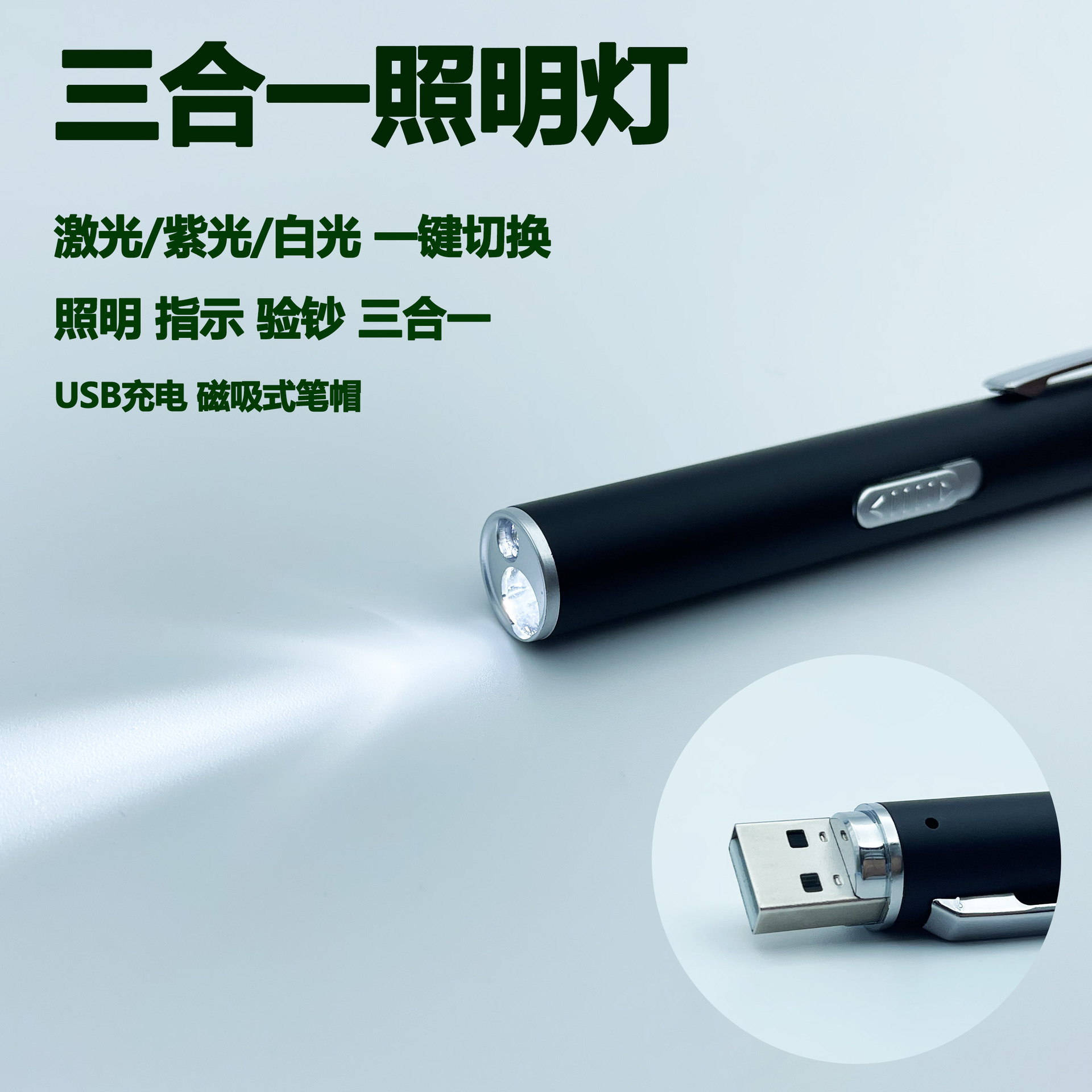 三合一懐中電灯USB充電紙幣検査ランプ赤外線レーザーライトLED白色多機能ランプ部品