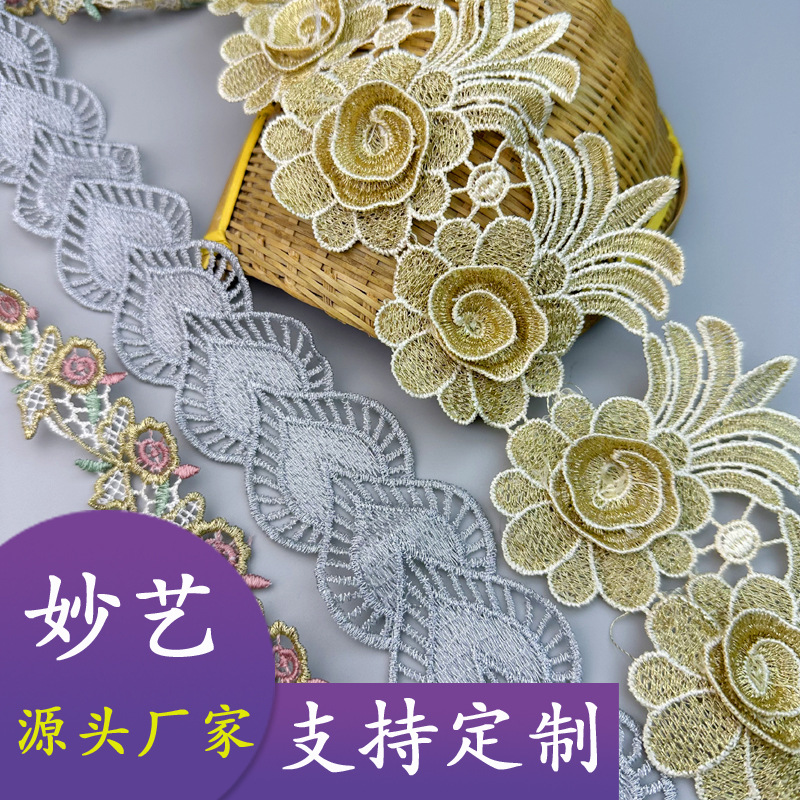 Miaoyi 外国貿易衣料品バーコードコンピュータ刺繍ヨーロッパとアメリカのゴールデンレース中国風の衣装エッジケーキスカートレース