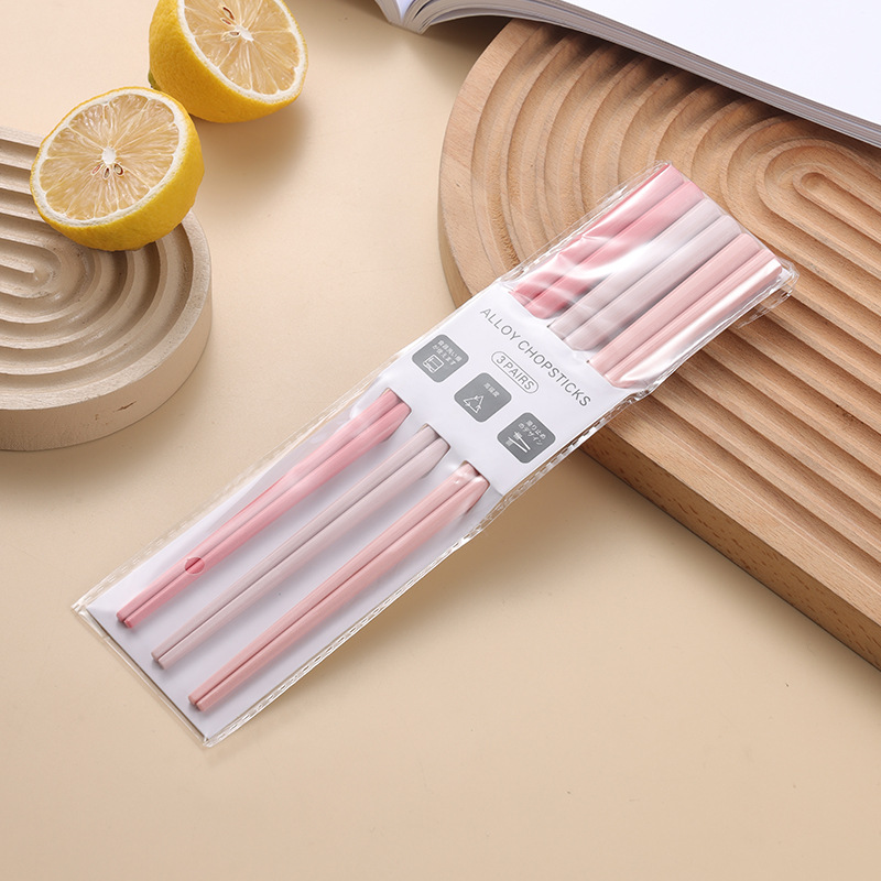 ネット紅八角寿司箸23cm三足入り日本式尖頭ファッションカラーpet合金箸耐高温