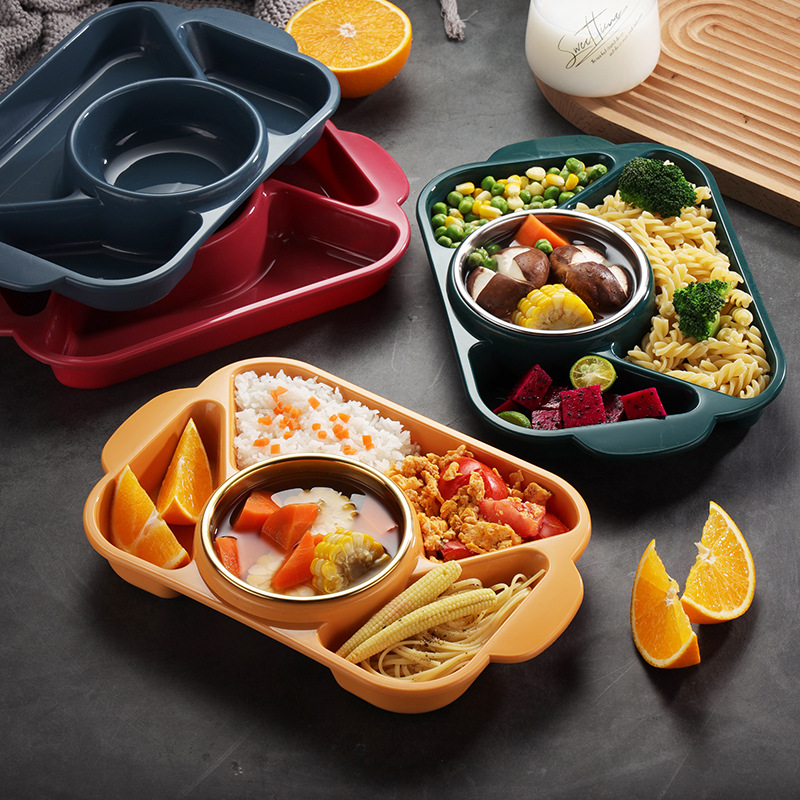 分格食事皿ステンレス碗セット食品級子供家庭用食堂で食事をします。