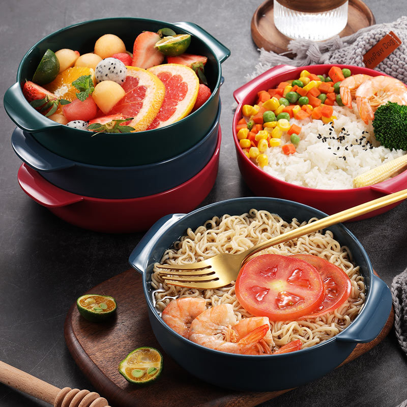 北欧風双耳湯碗家庭用新型ネット赤泡碗大サイズ寮用学生ラーメン碗サラダ碗