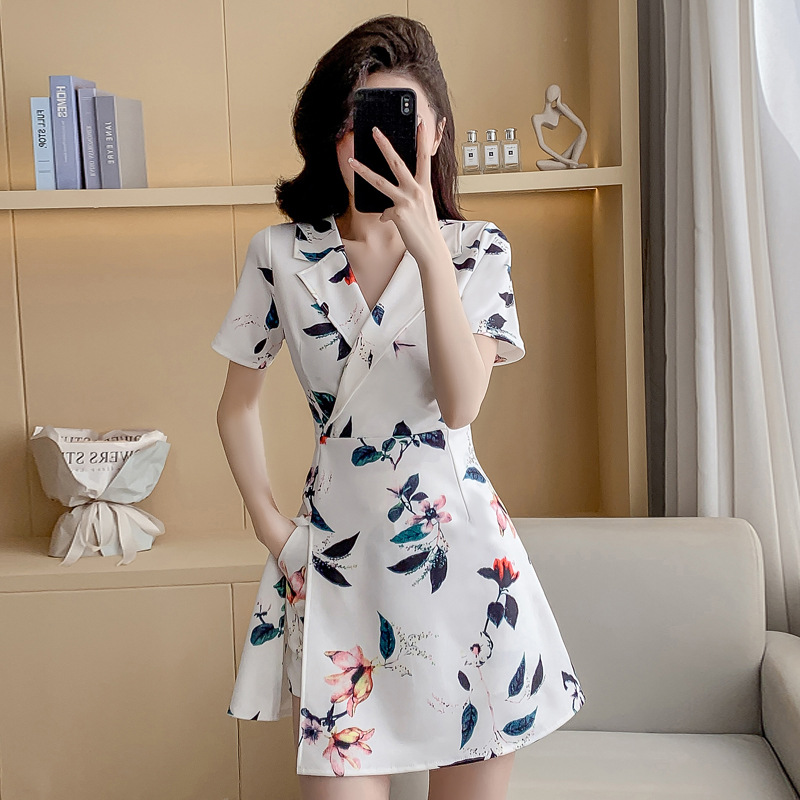 実拍高腰高弾ワンピーススーツ女性夏2025新型小柄スーツ気質職業スーツ花色