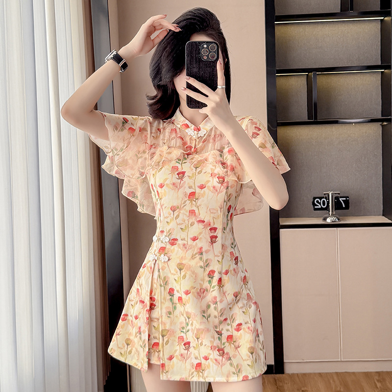 新しいスタイルの若々しい新しい中国風のドレススーツ花柄チャイナドレス改良された日常的な小さな夏の実物写真