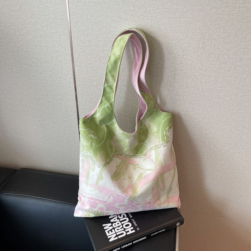 春夏新作キャンバス文学ハンドバッグ夏の新鮮なイラストショルダーバッグ大容量学生かわいいバッグ