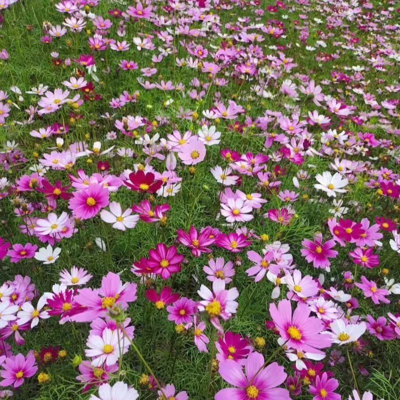 混色コスモスの種格桑花種種七色四季種まき花の花が咲きやすい花の種が庭に植えられています。