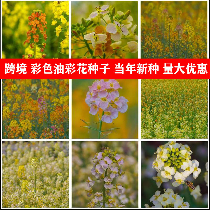 色の菜の花の種の七色の菜種の黄色の菜の花の屋外の庭の景観の花の海の花の種の花の草の種