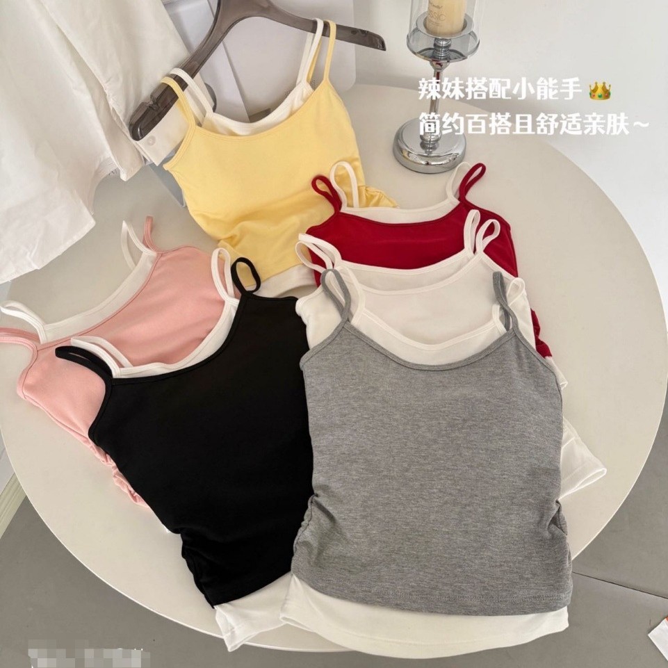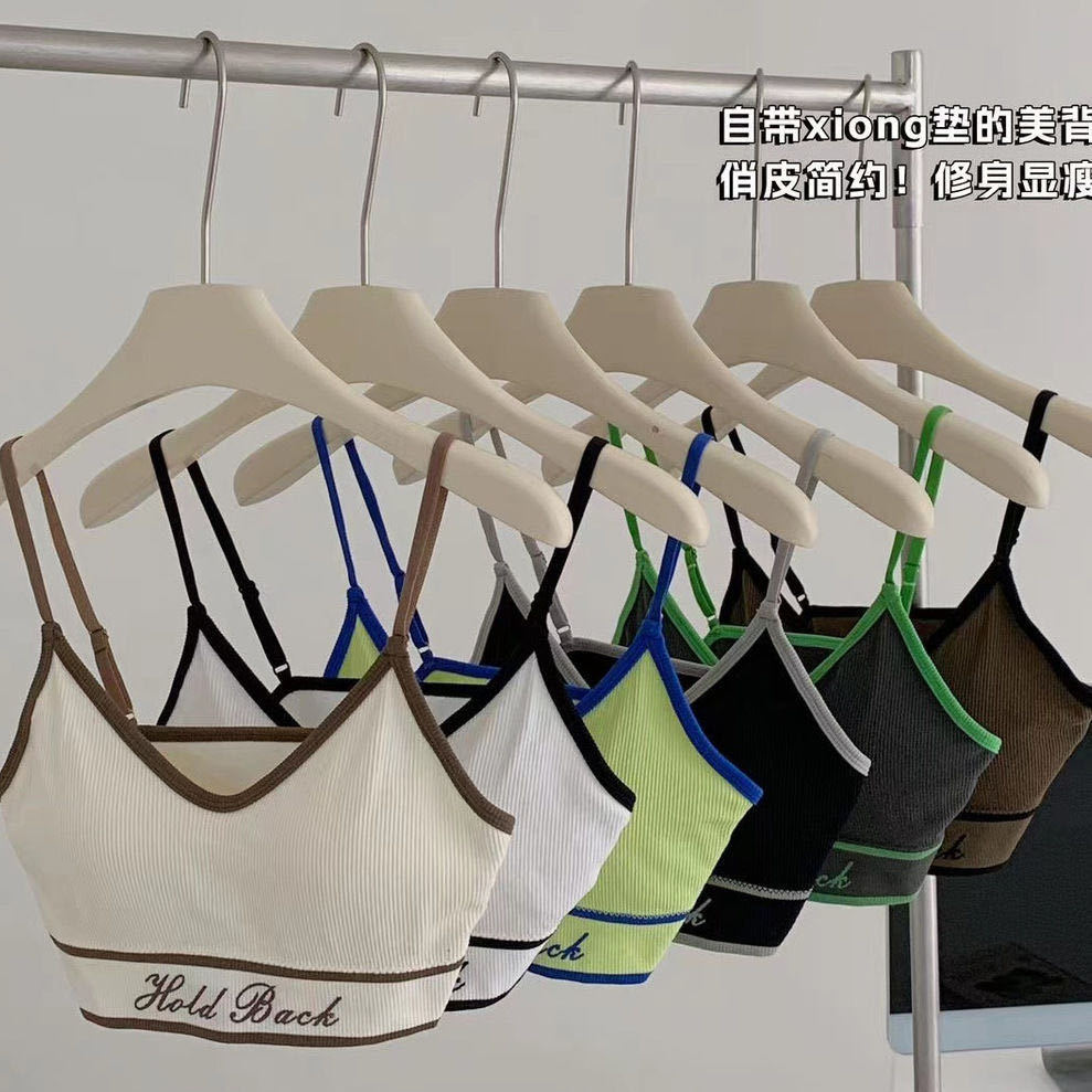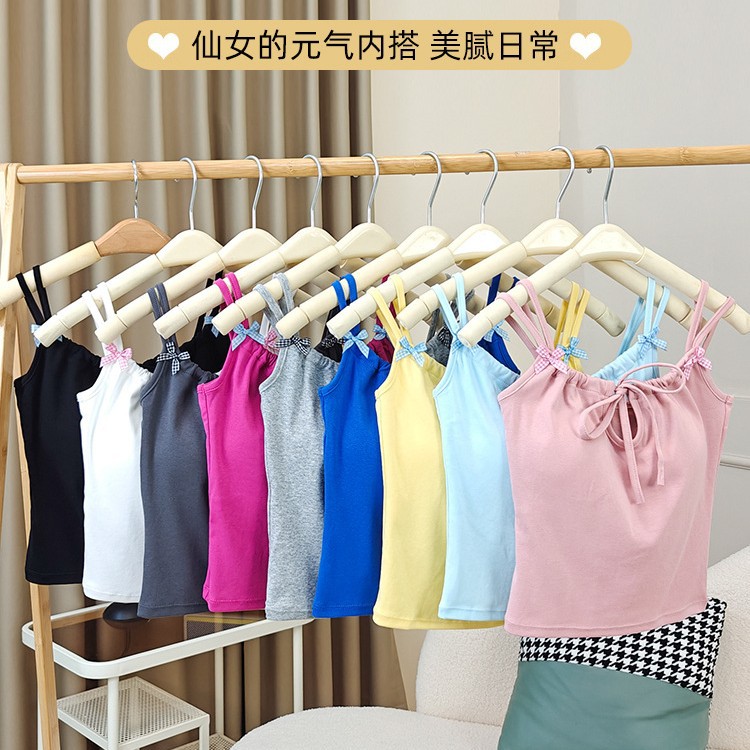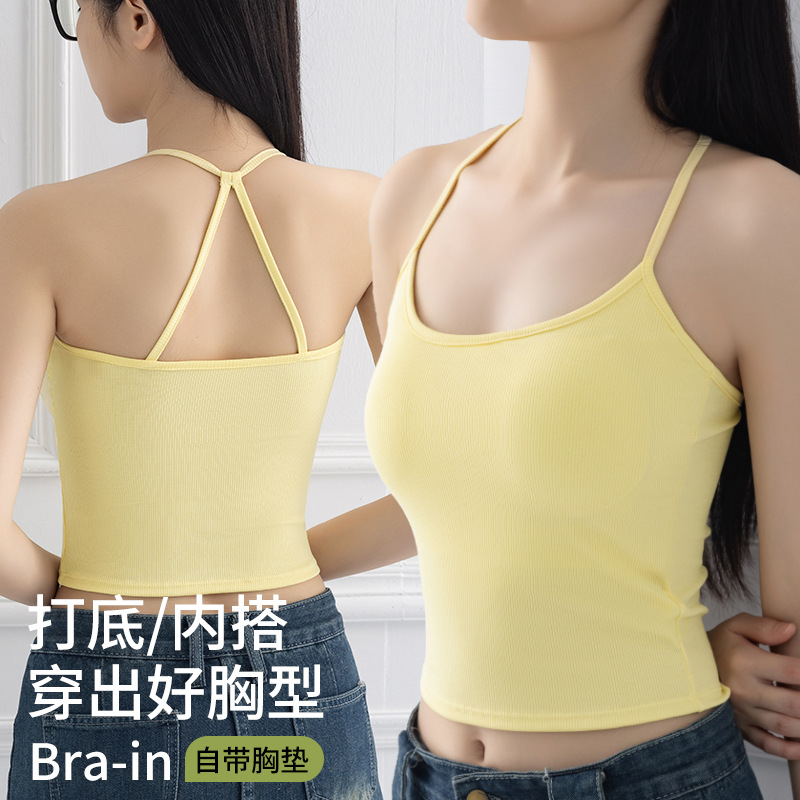 リボンピュアセクシーホットガールキャミソールレディース夏胸パッド付きダブルスパゲッティストラップインナートップ美しい背中