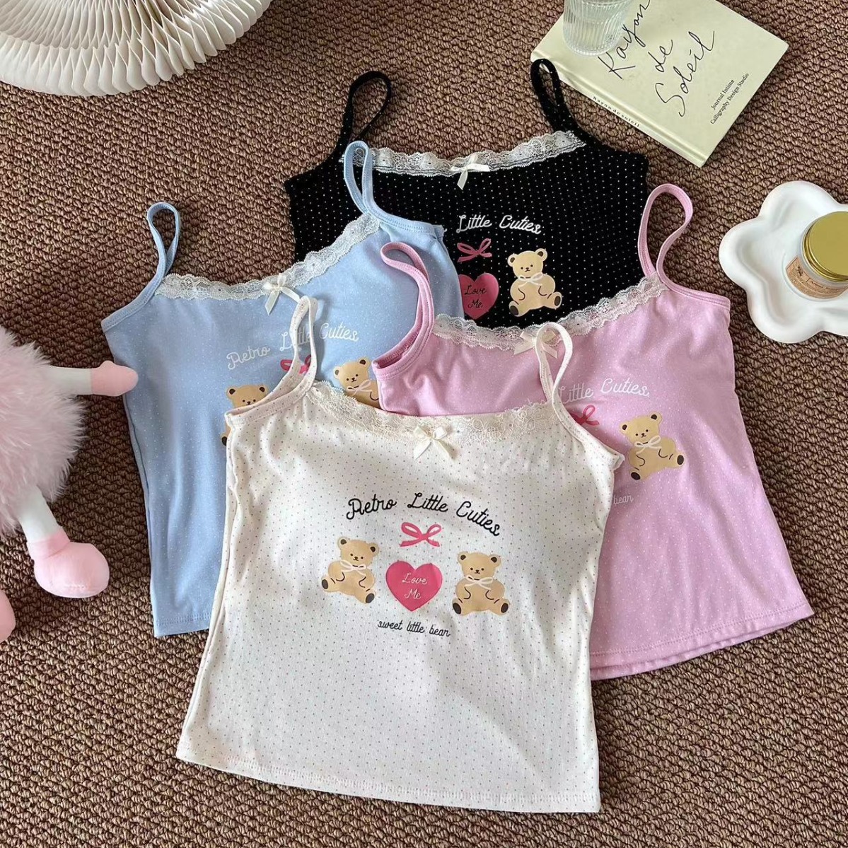 ボタンの小さいストラップの純欲風の甘いギャルのプリントのベストの女性は胸のパッドの下着の外で短い上着を着ます。