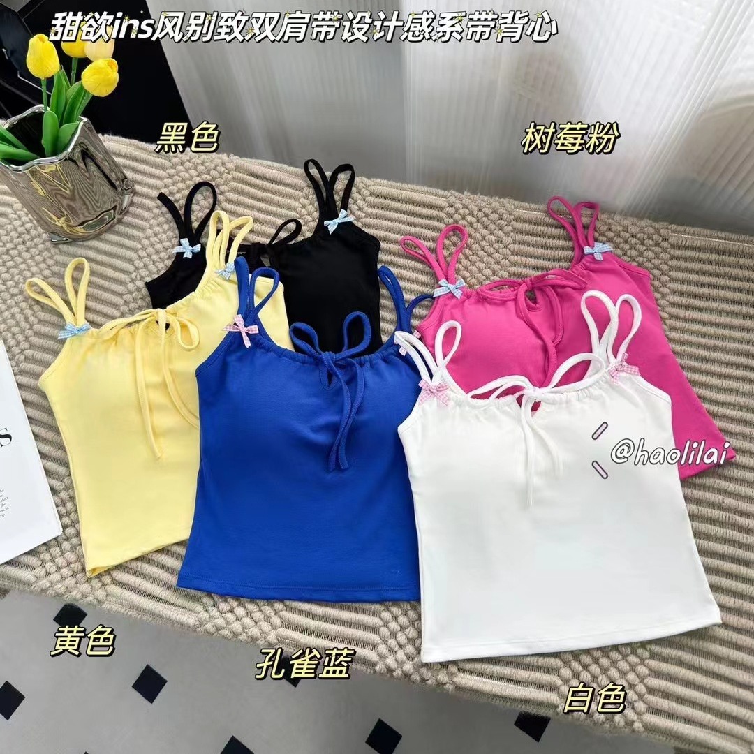 清純な短い袖のない上着夏の純欲ギャルのキャミソールの女性のデザイン感のあるストラップの美しい背中の上着