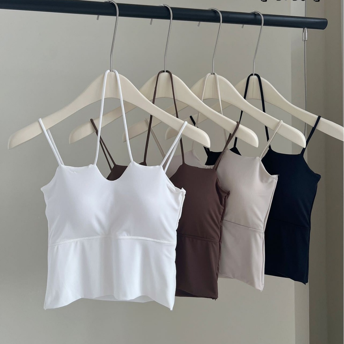 ロングタイプの美背キャミソールの外着一体式胸パッド付きセクシーな露背夏の氷糸は胸の薄いタイプのインナーに包まれています。