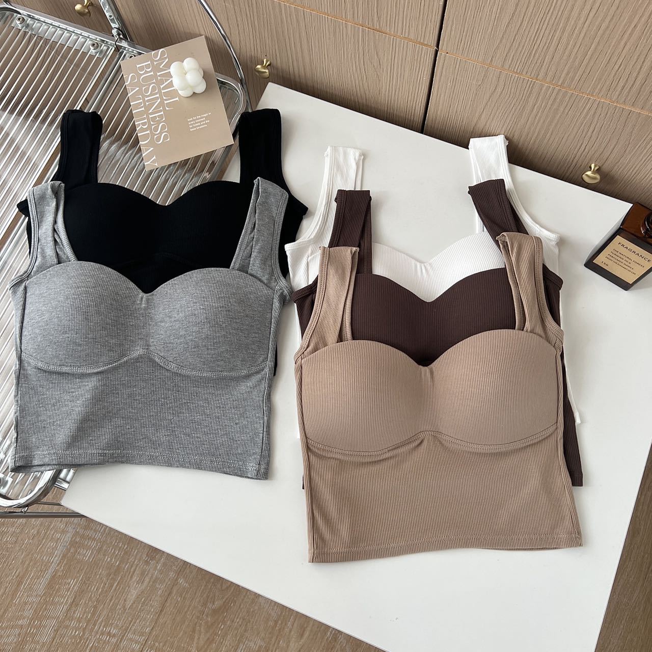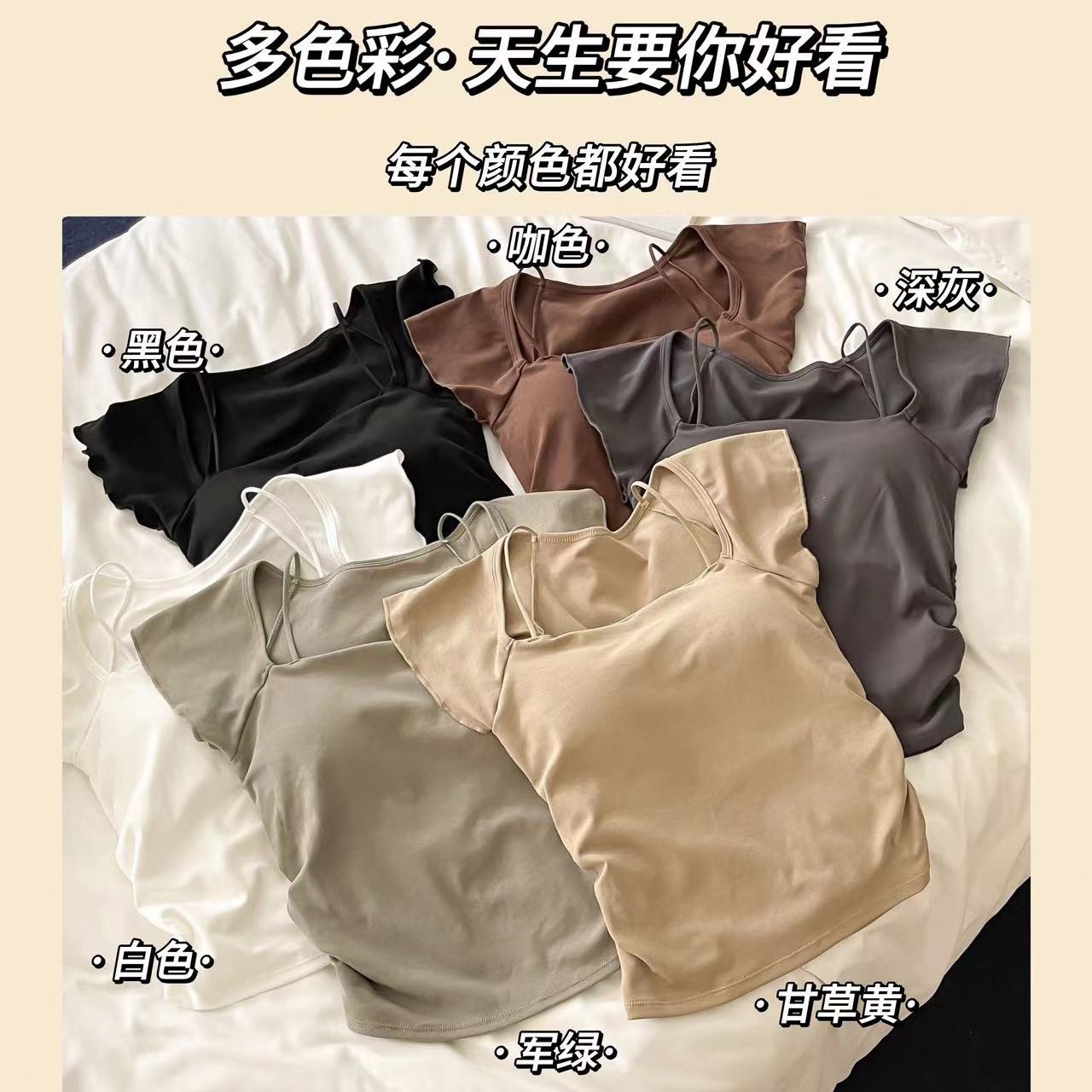 夏のギャルの純色のストラップの小さいベストの女性の中で一体の胸を掛けて底の美背の下着を打って外に着て痩せている上着を現します。