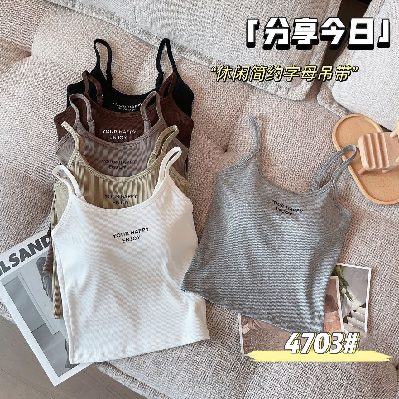シンプルなキャミソールの女性用胸パッド一体式固定コースターのアルファベットファッション