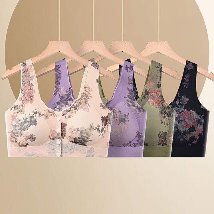 前ボタンのブラジャーの中で高齢のお母さんの下着は跡がなくて、スチールリングのプリントの美背が集まっています。