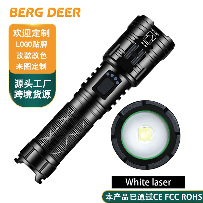 国境を越えた新型屋外白レーザー懐中電灯usb充電大電力家庭用防水探照懐中電灯強光
