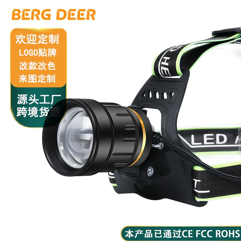 新型p50強光ヘッドライトの大出力伸縮ズーム感応ヘッドライト屋外夜釣りヘッドはランプをつけて卸売りします。