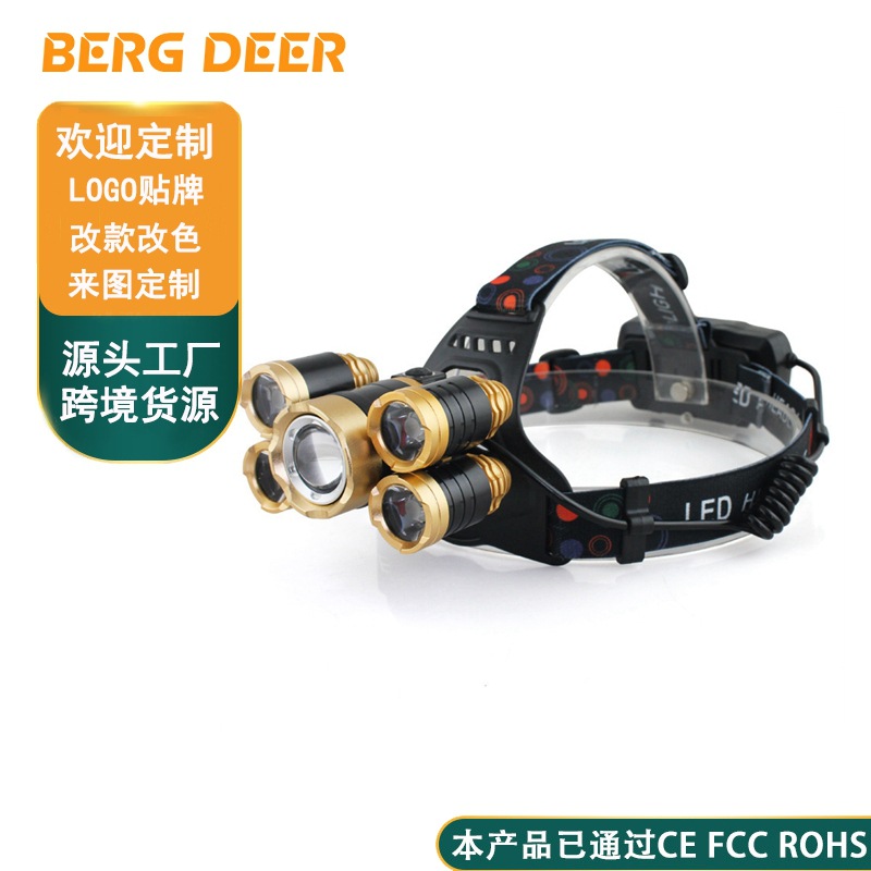 国境を越えた新型t 6強光ヘッドライト5led飛行機灯調整焦点誘導サーチライト防水リチウム電気釣り灯