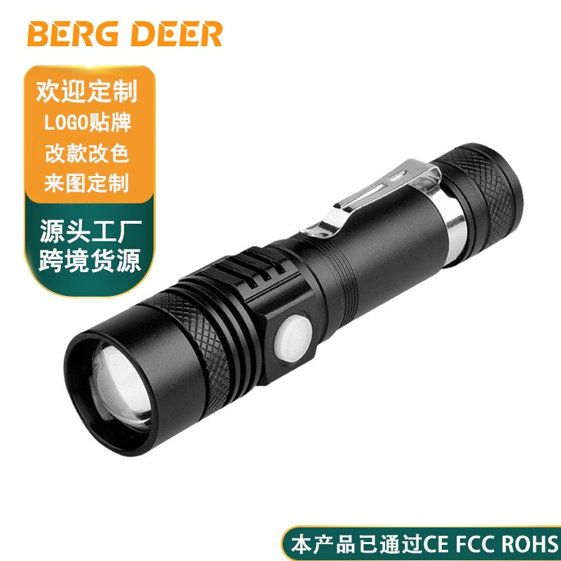 新型強光led懐中電灯屋外騎行灯内蔵リチウム電気usb充電ズーム懐中電灯照明灯