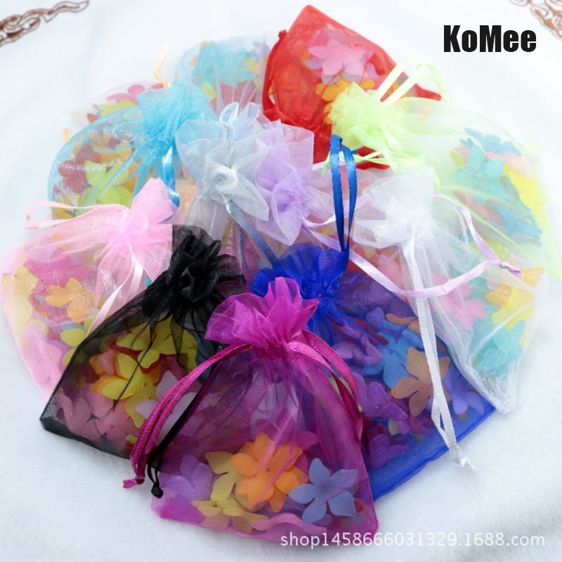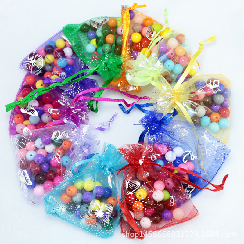 箔押し蝶糸欧根糸透明網糸引き紐ポケットアクセサリー包装袋プレゼント収納袋キャンディー袋