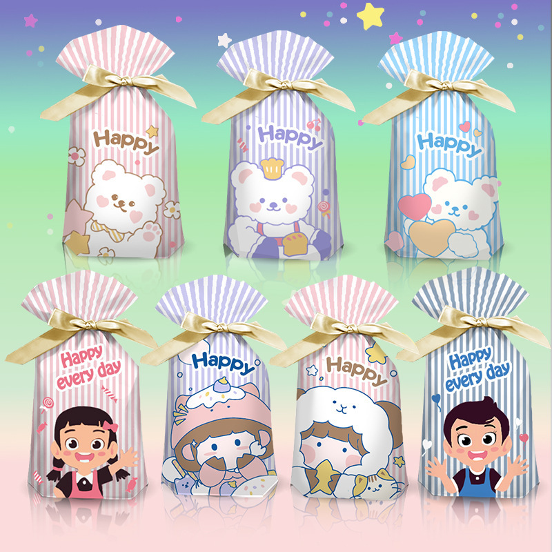新しいプラスチックの贈り物の袋の六一子供の日のキャンディーの包装袋は袋のリボンを焼きます。