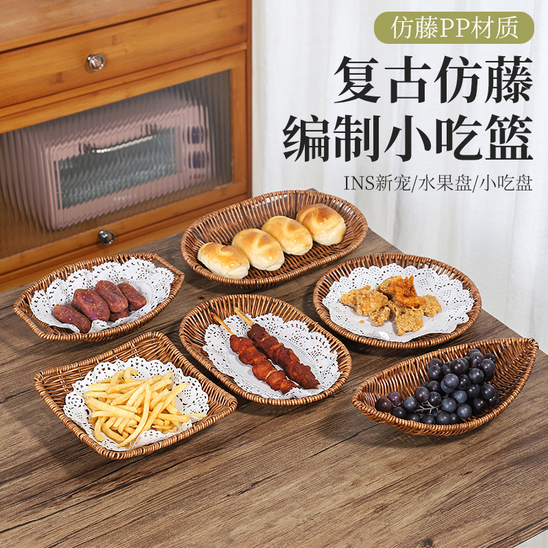 模造籐スナックバスケット、フライドポテトプレート、パンケーキ、ピーナッツ、メロンシードスナックプレート、スナックパンバスケット、フルーツボウル、野菜バスケット