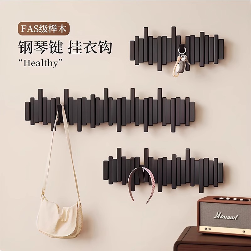 ピアノキーフック玄関ドア無垢材洋服ハンガー収納壁掛けパンチフリーコートラック