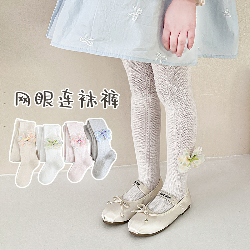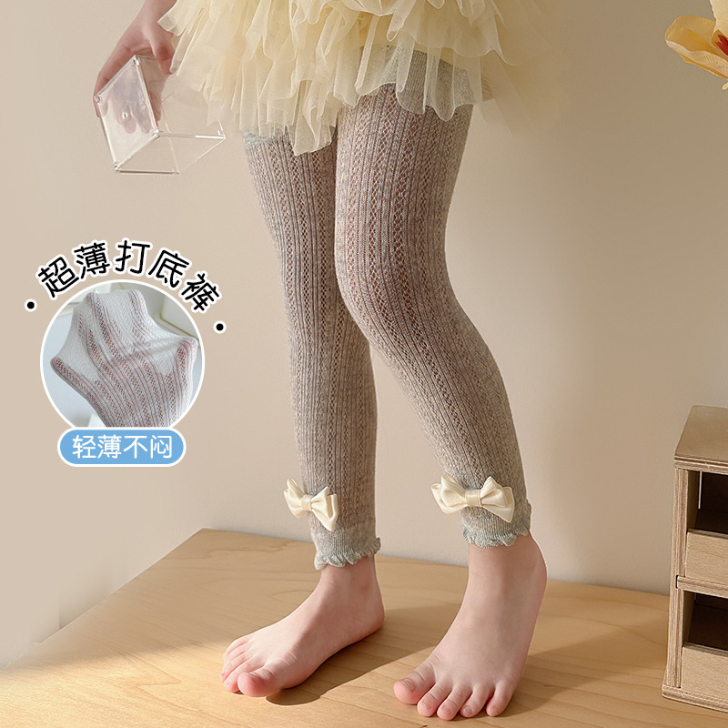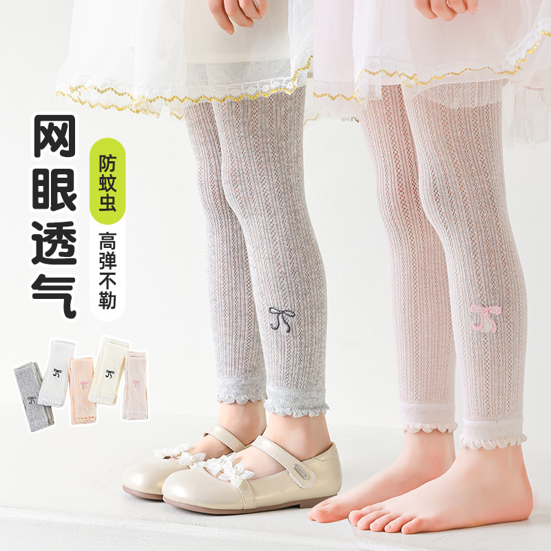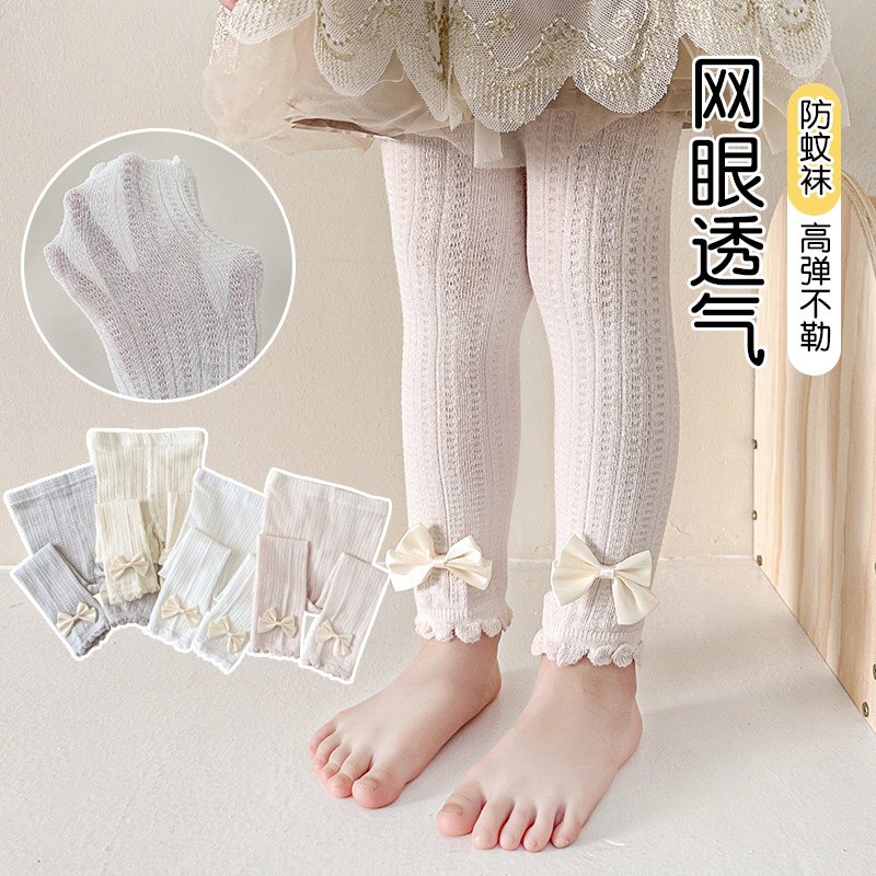 春夏の新型ネットの目のレギンスの女の子の9分のズボンの蝶結びの王女の靴下の子供の外は夏のストッキングを着ます。